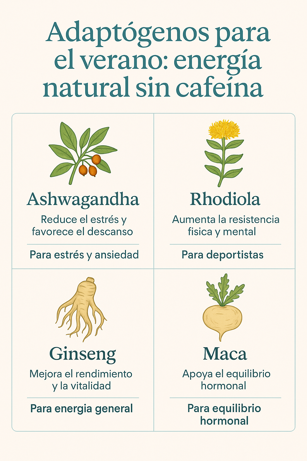 El verano nos invita a disfrutar de actividades al aire libre, viajes y jornadas más largas, pero también puede suponer un desgaste físico y mental. Los adaptógenos son aliados naturales que puedes encontrar en nuestro herbolario en Xàtiva, ideales para mantener la energía y el equilibrio sin necesidad de recurrir a la cafeína.
