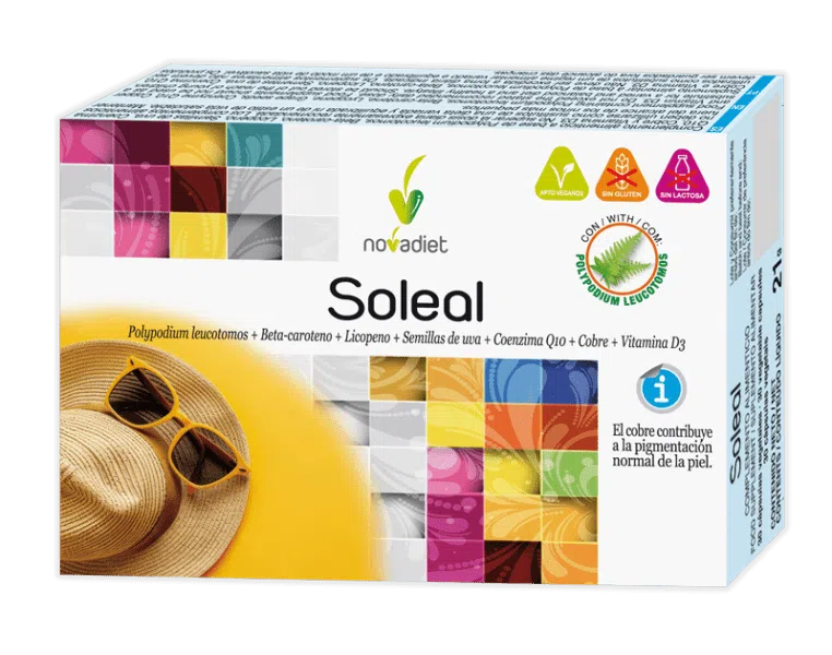 SOLEAL es un complemento alimenticio diseñado para preparar, proteger y reparar la piel frente a los daños del sol. Ideal para quienes desean potenciar el bronceado y prevenir el fotoenvejecimiento.